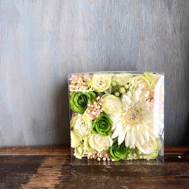 プリザーブドフラワーの小花がいっぱい!ガラスフレームアレンジ