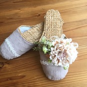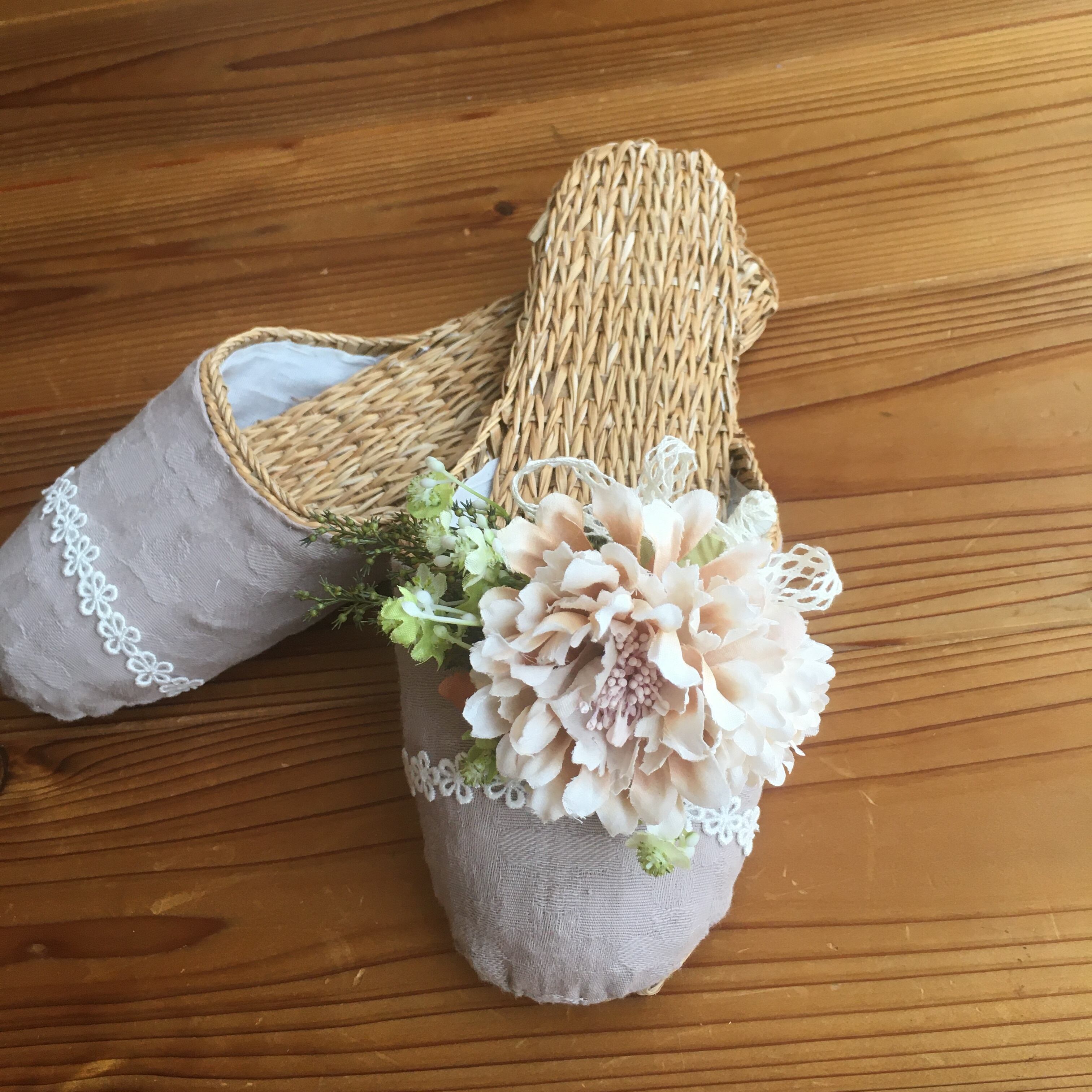 アーティフィシャルフラワーのコサージュ付きスリッパです。