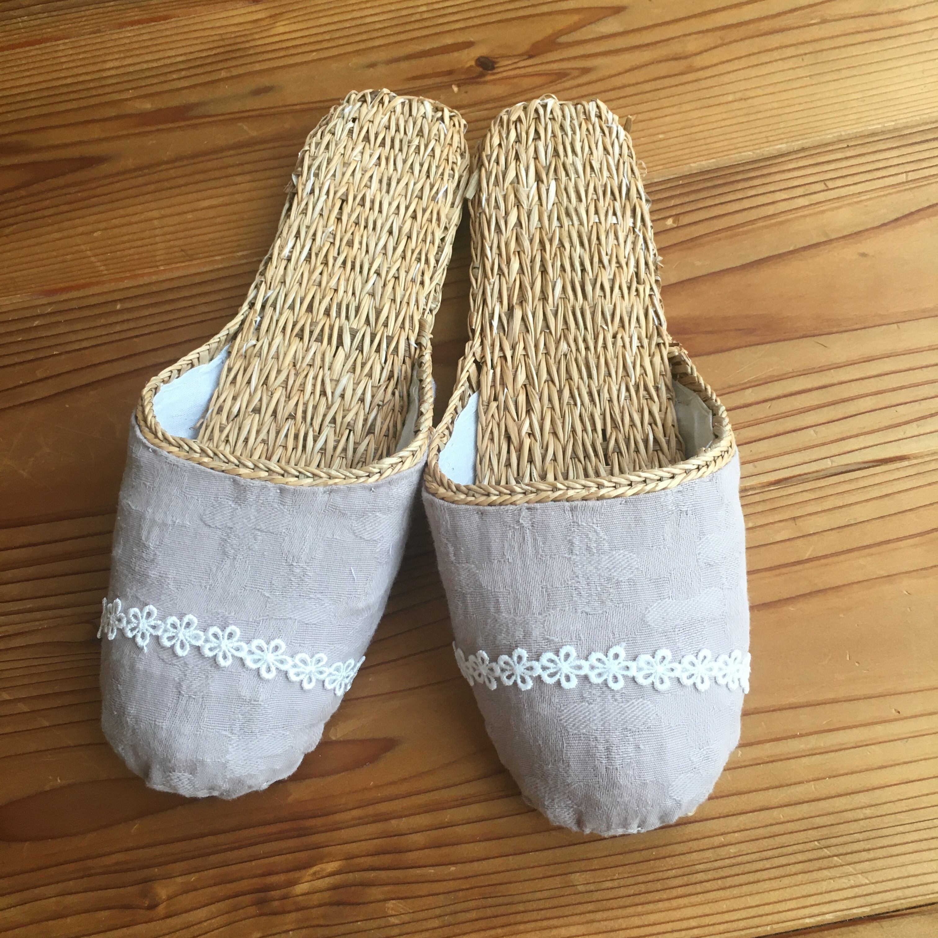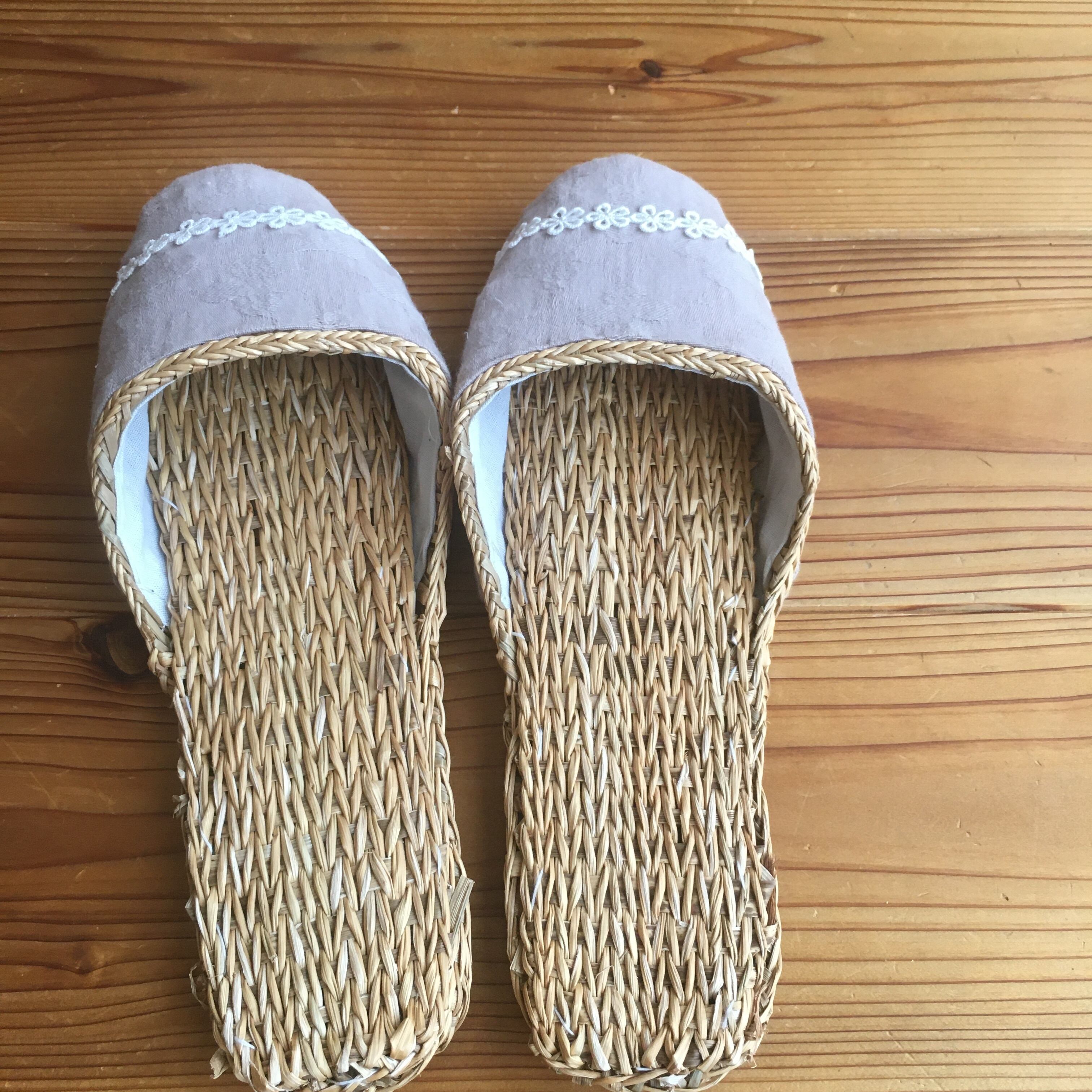 スリッパは、ムギワラ素材。素足で履くと気持ちいいです。
