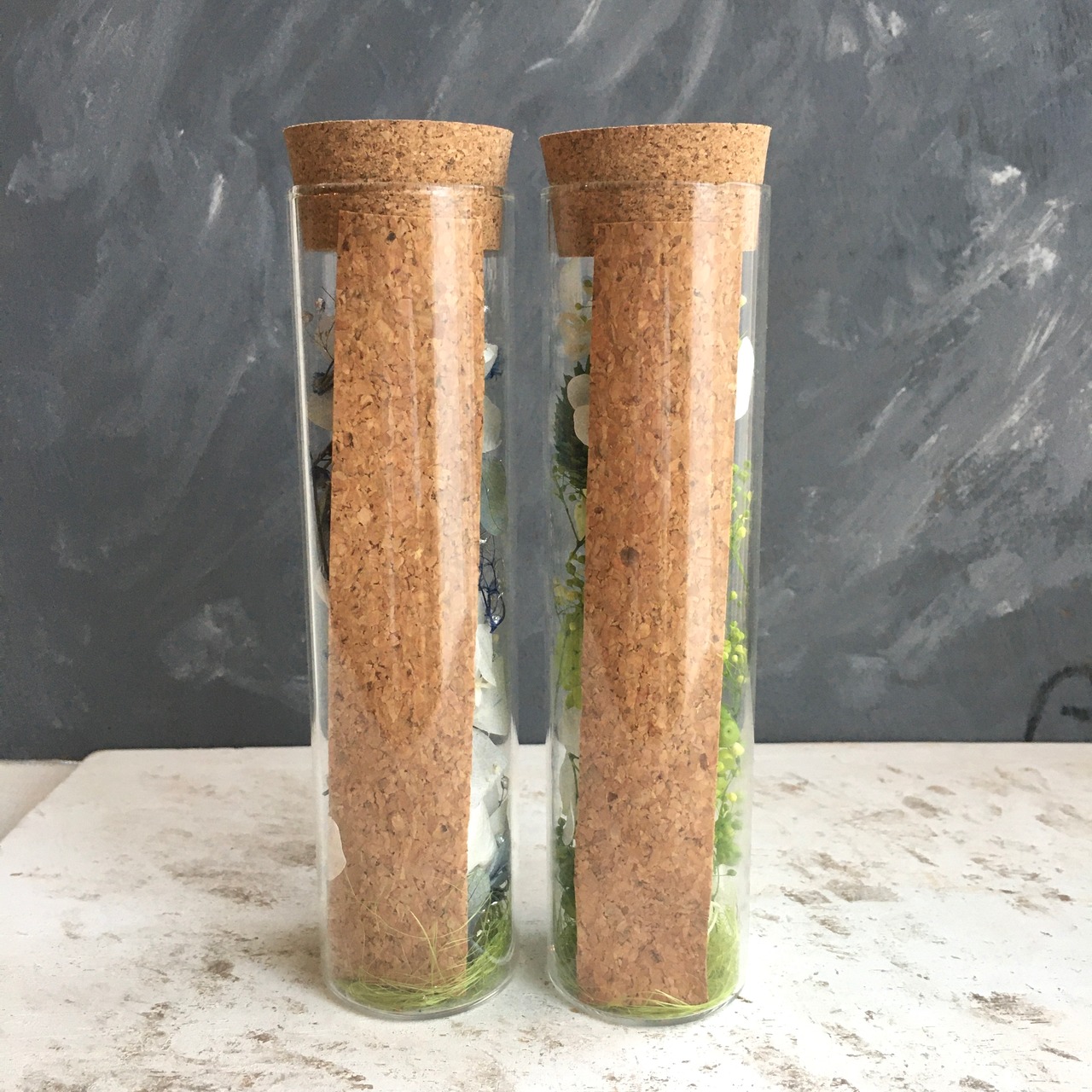 ナチュラルなコルクキャップボトルフラワーです。