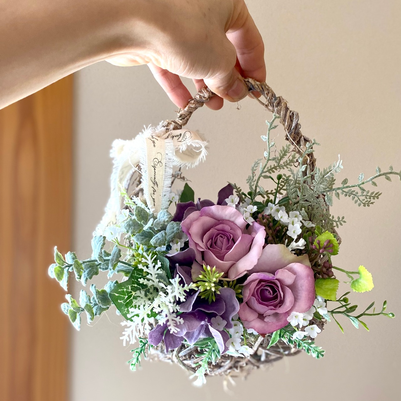 そんな優しいライラック色の薔薇がお好きな方におすすめしたいエッグリースアレンジです。