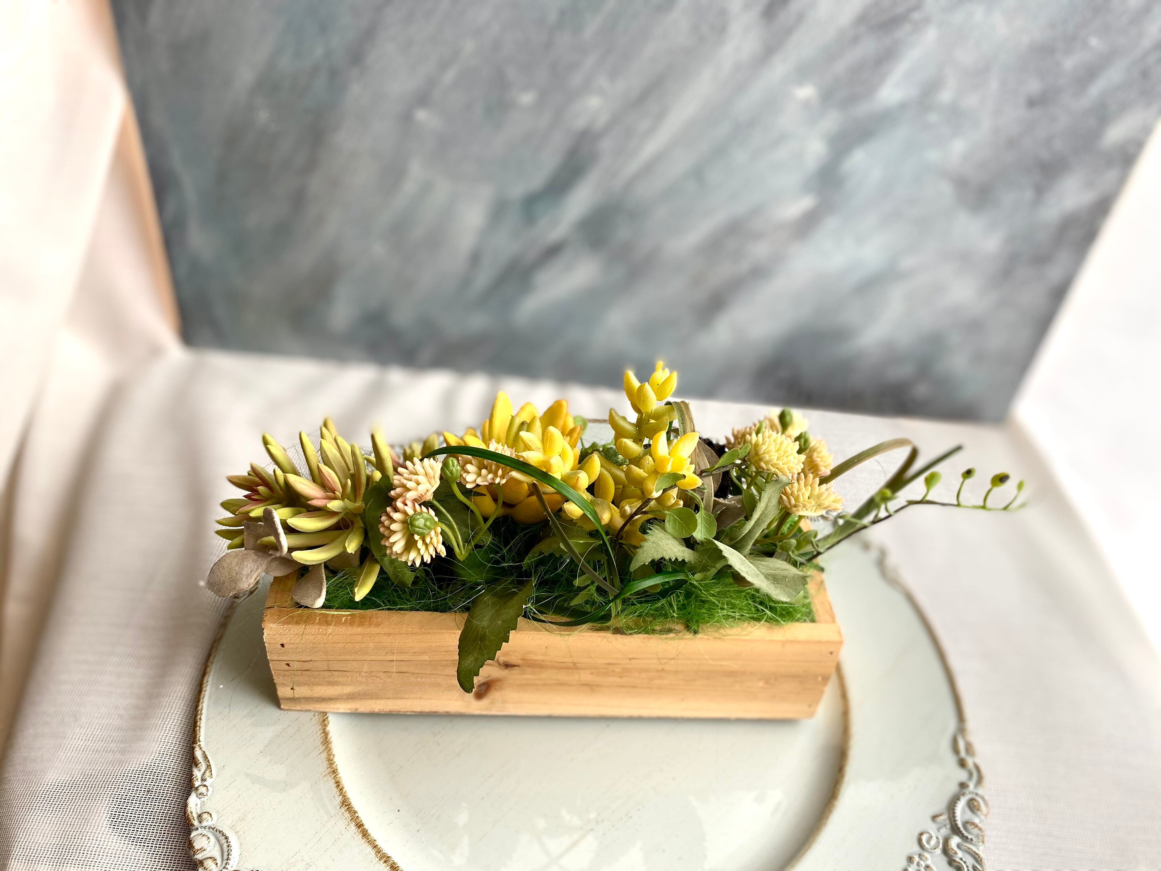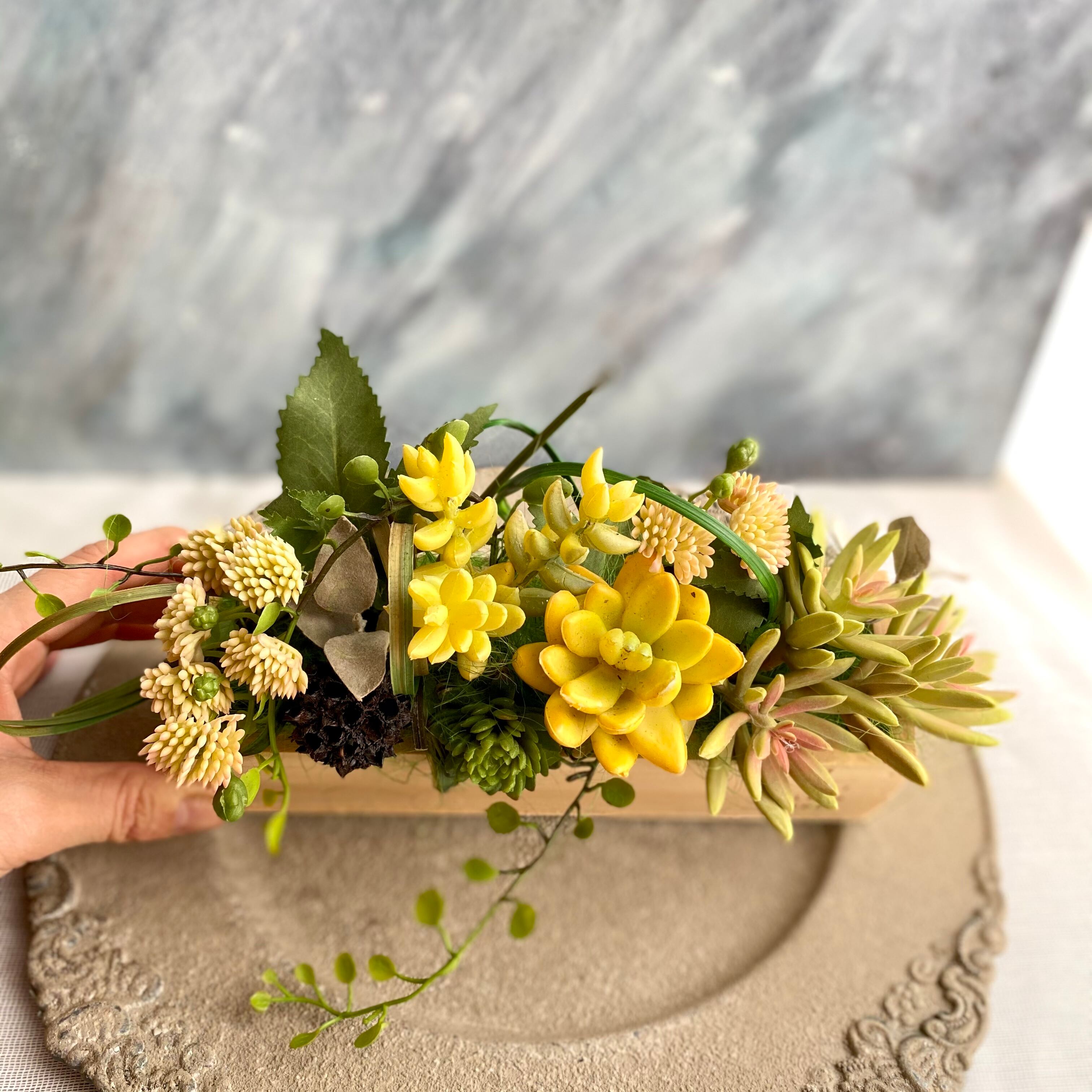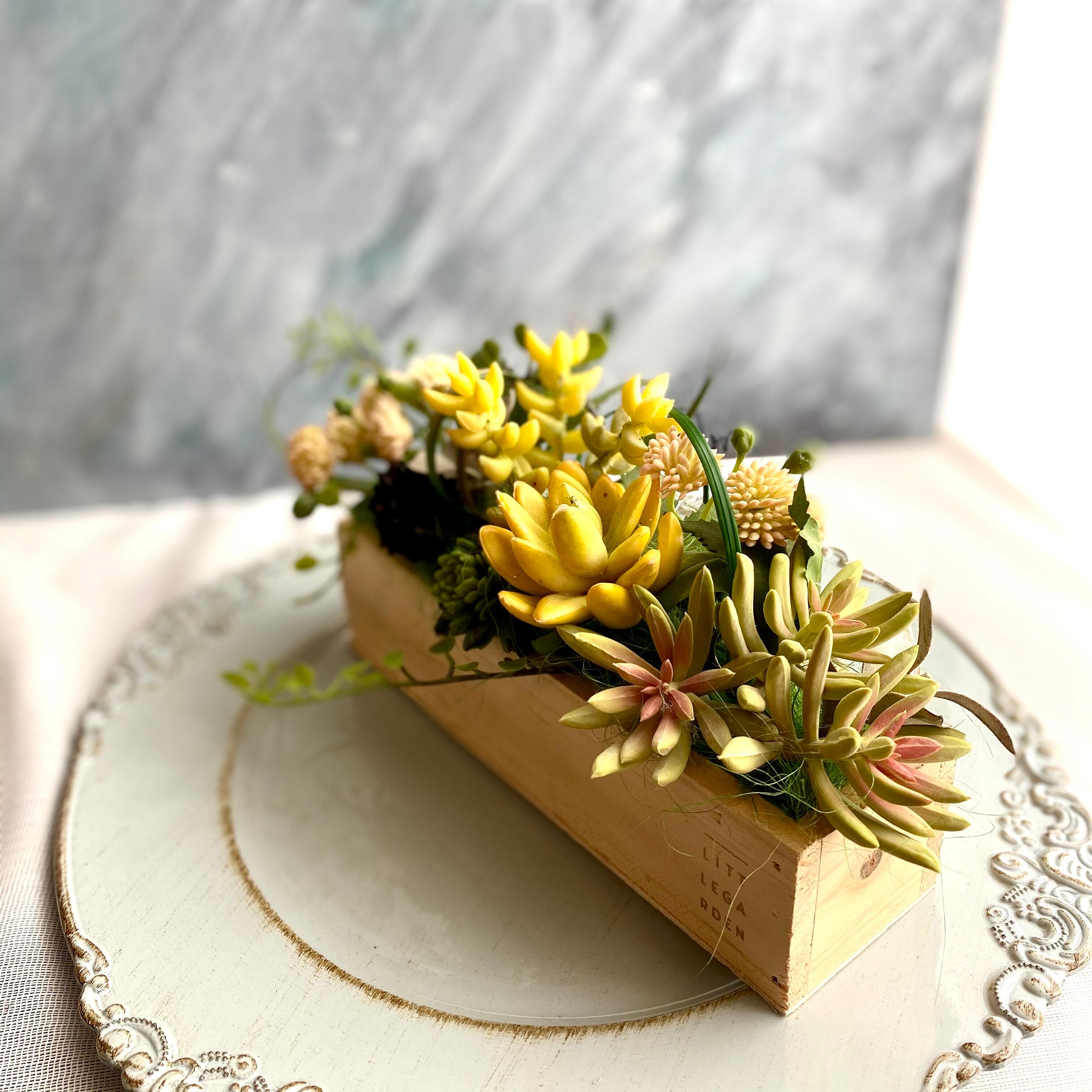 和室にも洋室にもディスプレイしやすい木箱アレンジです。