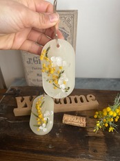 プリザーブドフラワーのミモザ、紫陽花、モリソニアなどをアレンジしています